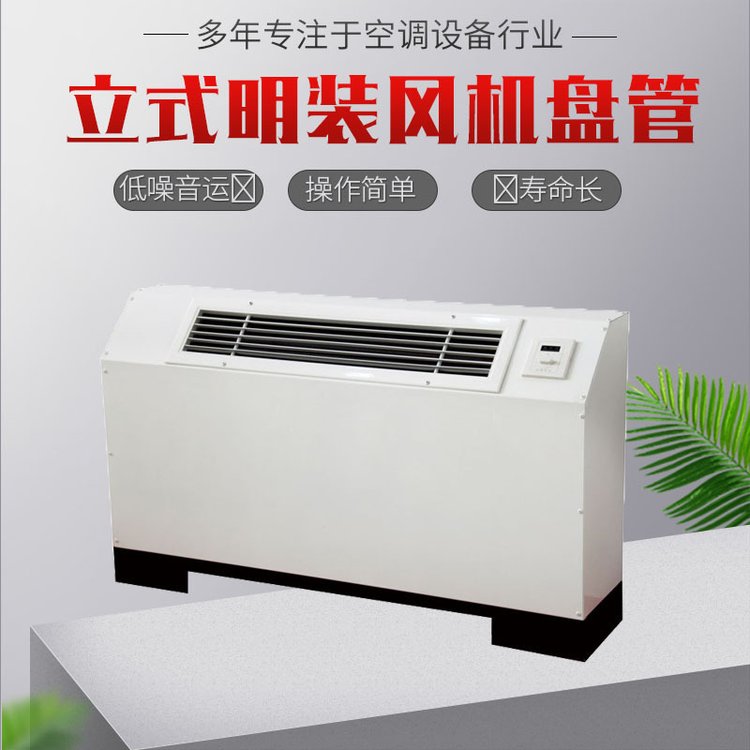 立式明裝風(fēng)機盤具有管效率高,能量足,風(fēng)量大,噪音低,安全可靠,壽命長的優(yōu)點,是明裝風(fēng)機盤管。